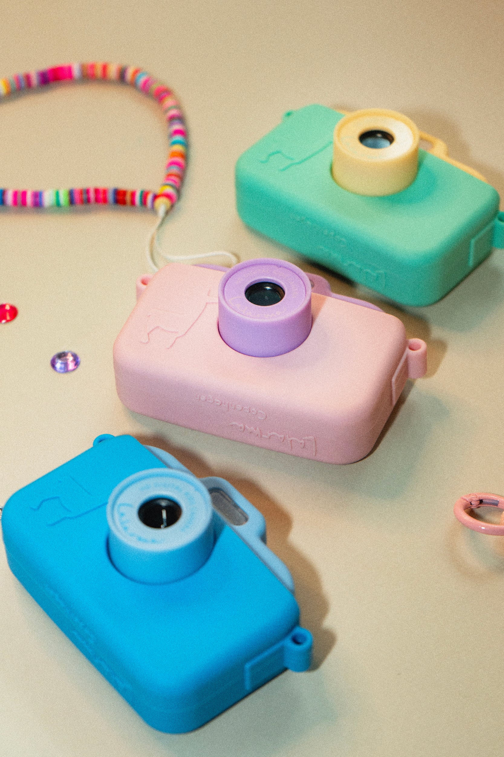 But this is more than just a camera – it’s a full experience! Each set includes a matching jewellery box, a handy hanger, and a sheet of diamond stickers, so kids can personalize their camera and keep their treasures safe. The soft silicone case in mint makes it comfy to hold, and the included diamond stickers and lucky charm add even more personality.
